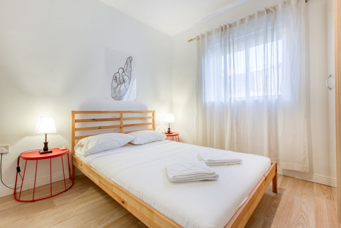 L'appartamento è un open space e può ospitare comodamente fino a 6 persone. Dispone di tre camere da letto: due con letto matrimoniale e una con due letti singoli. È presente un bagno familiare con doccia e un bagno di servizio con WC, lavandino e lavanderia (dotata di lavatrice e asciugatrice).