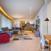 Ampio soggiorno open space con divano comodo, zona pranzo e smart TV