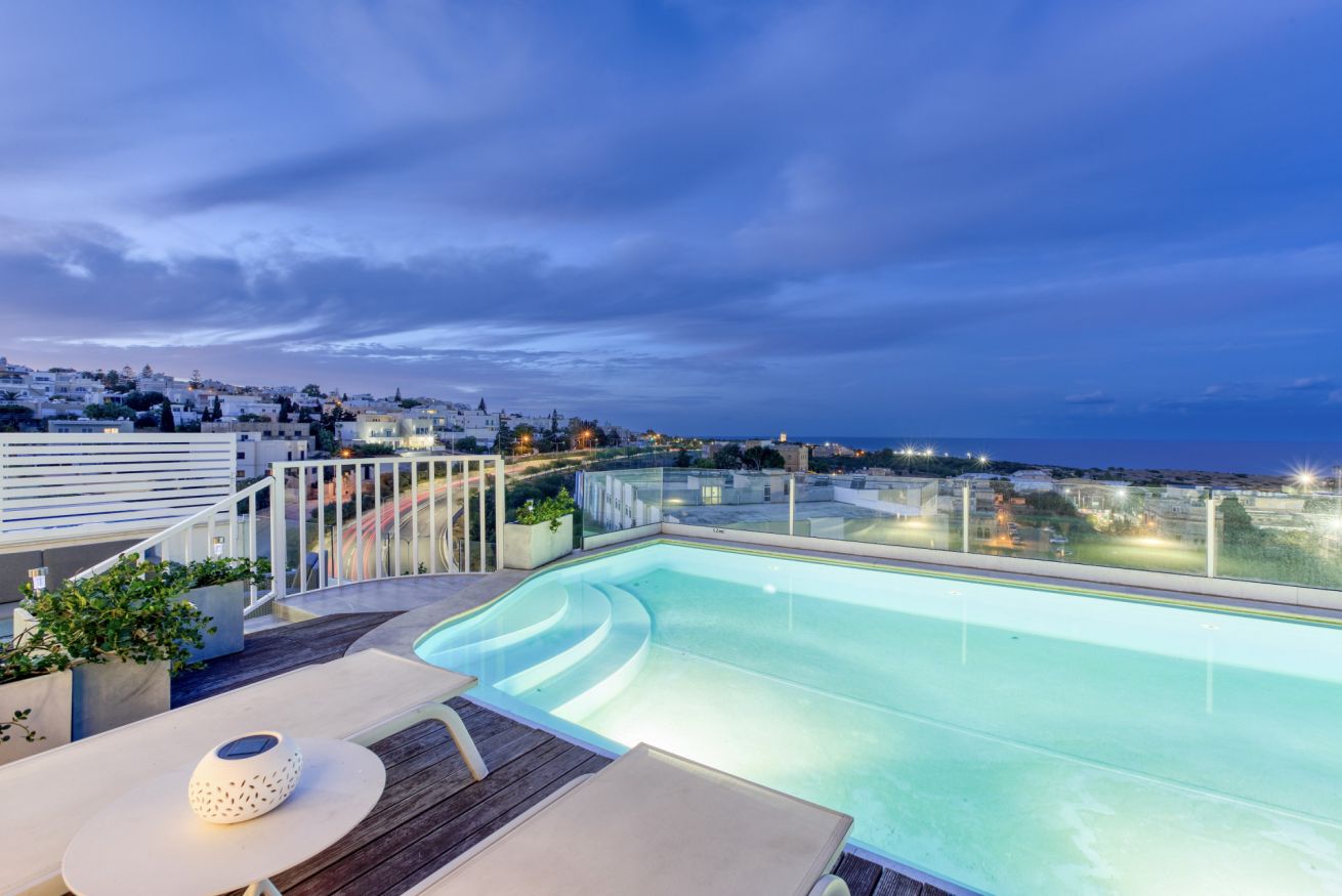 Concedetevi il perfetto equilibrio tra lusso, comfort e design in questo attico mozzafiato. Situato al sesto piano, dispone di una terrazza privata con una splendida piscina e un’ampia zona prendisole, offrendo una vista mare spettacolare.