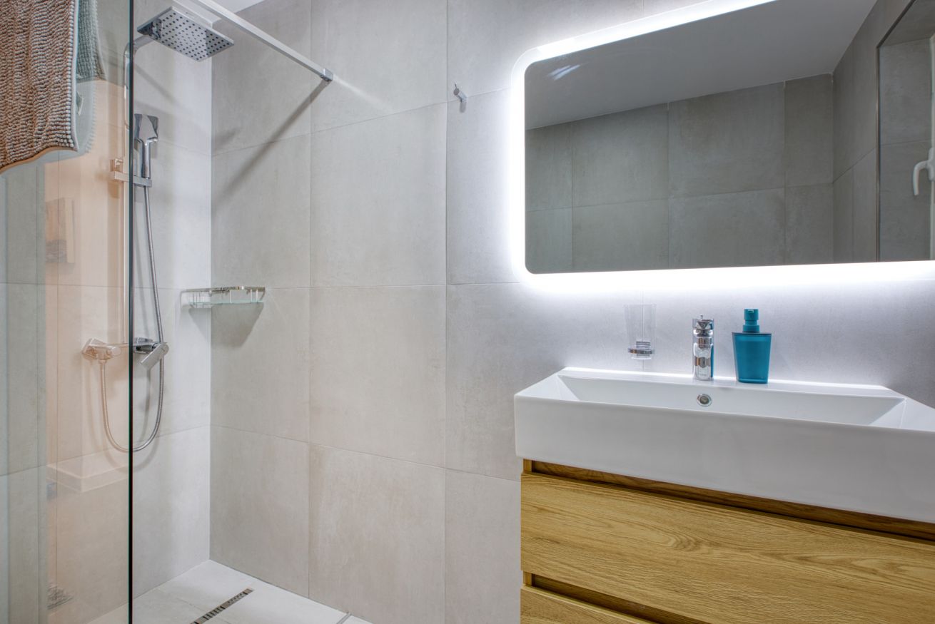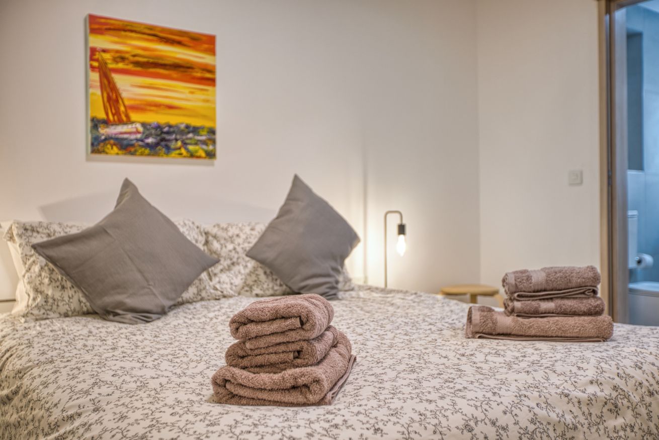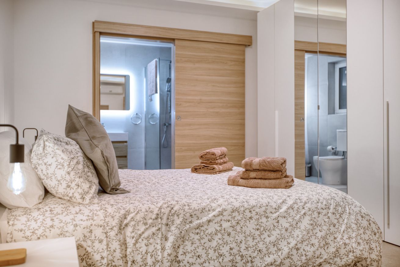 L'appartamento dispone di due spaziose camere matrimoniali, di cui una con bagno privato. Entrambi i bagni sono moderni e dotati di doccia. Lenzuola e asciugamani freschi sono forniti per il vostro comfort.