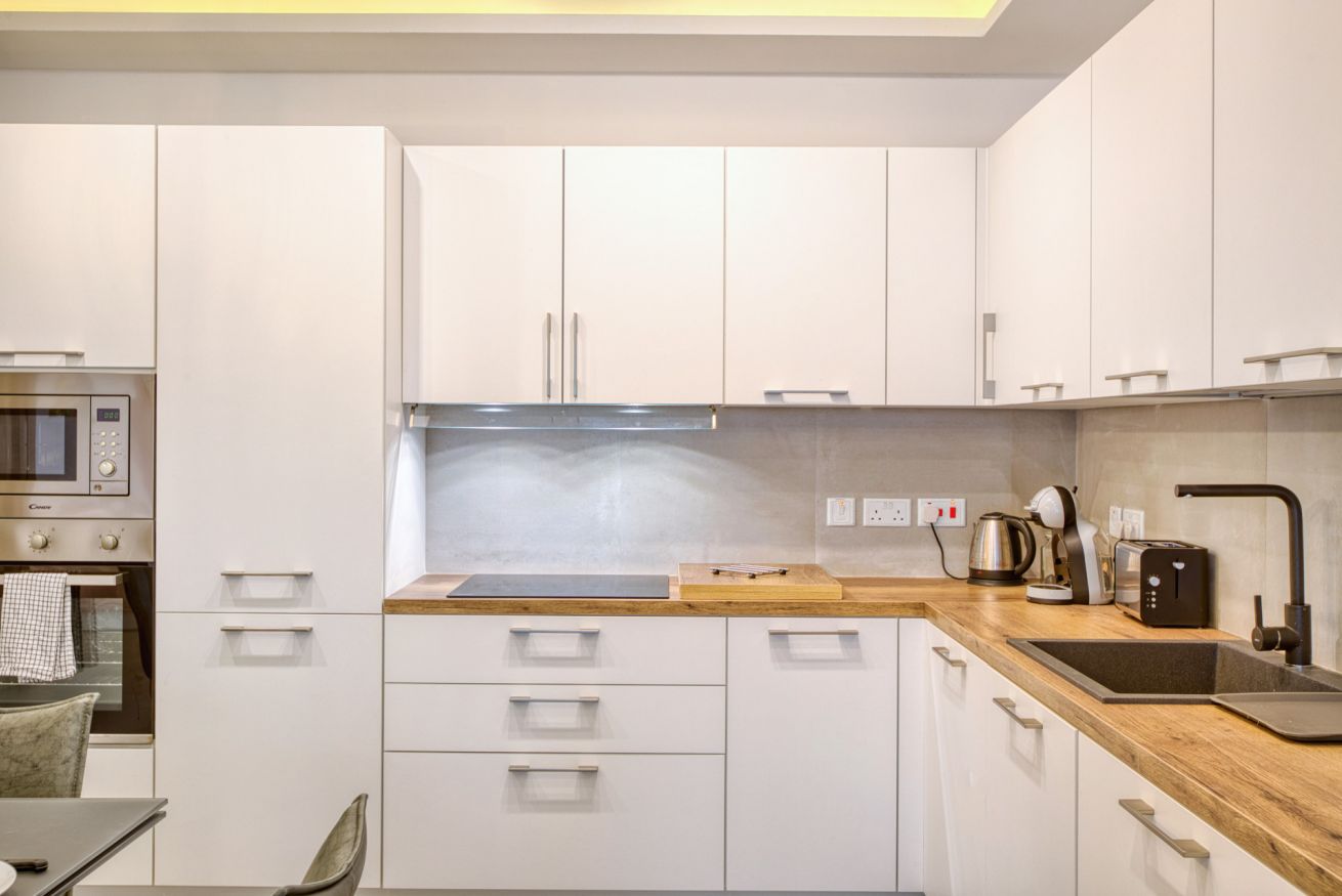 La cucina completamente attrezzata permette di preparare facilmente i pasti a casa, ed è dotata di forno, fornelli, frigorifero, microonde e tutti gli utensili essenziali. La zona giorno open space con area pranzo è perfetta per rilassarsi dopo una giornata di esplorazione, con un comodo divano, Wi-Fi veloce e TV a schermo piatto.