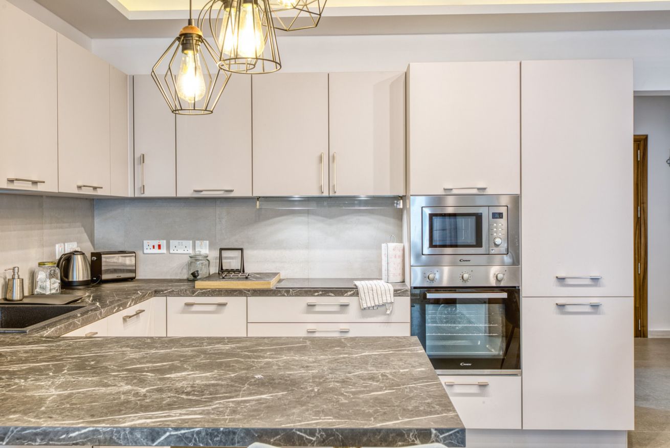 La cucina completamente attrezzata permette di preparare facilmente i pasti a casa, ed è dotata di forno, fornelli, frigorifero, microonde e tutti gli utensili essenziali. La zona giorno open space con area pranzo è perfetta per rilassarsi dopo una giornata di esplorazione, con un comodo divano, Wi-Fi veloce e TV a schermo piatto.