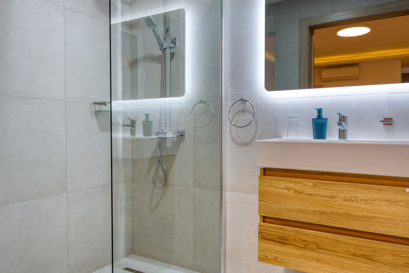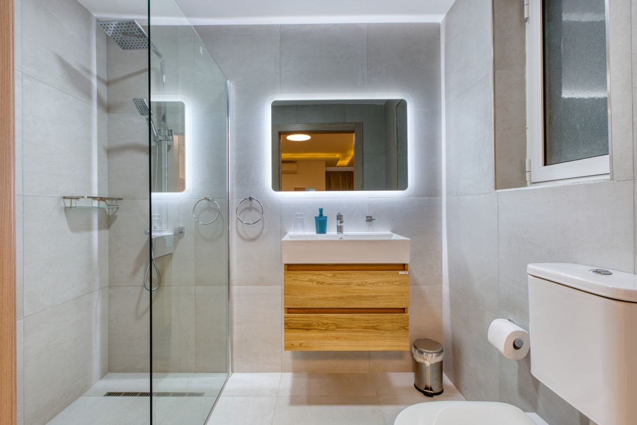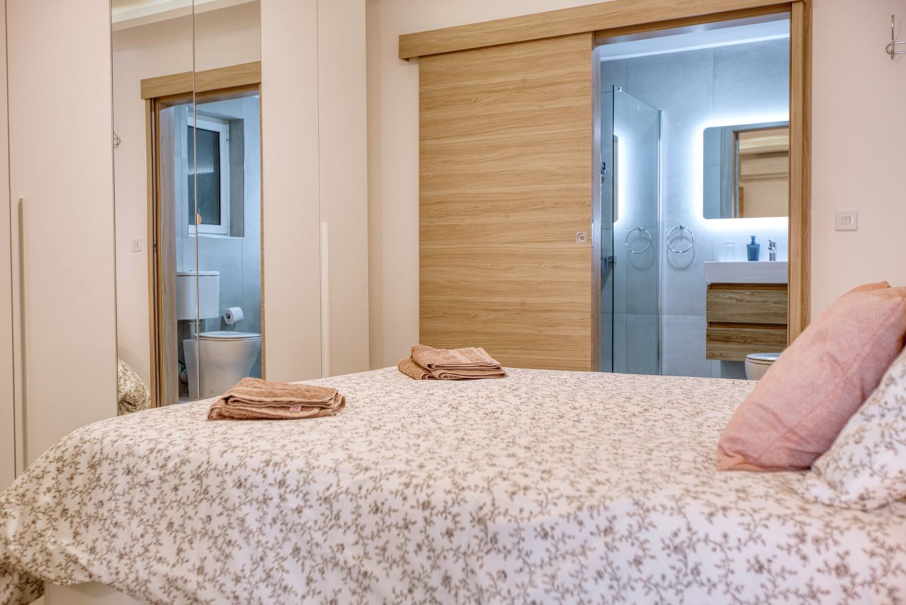 L'appartamento dispone di due spaziose camere matrimoniali, di cui una con bagno privato. Entrambi i bagni sono moderni e dotati di doccia. Lenzuola e asciugamani freschi sono forniti per il vostro comfort.