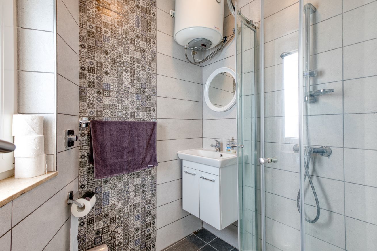The bedroom features a double bed that can be separated into two single beds upon request, while the living room offers a comfortable sofa bed to accommodate additional guests. Air conditioning and heating ensure a pleasant stay year-round, and you’ll also have access to an iron, ironing board, and hairdryer for your convenience.