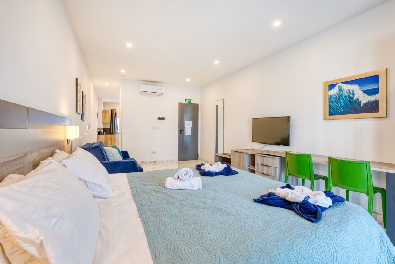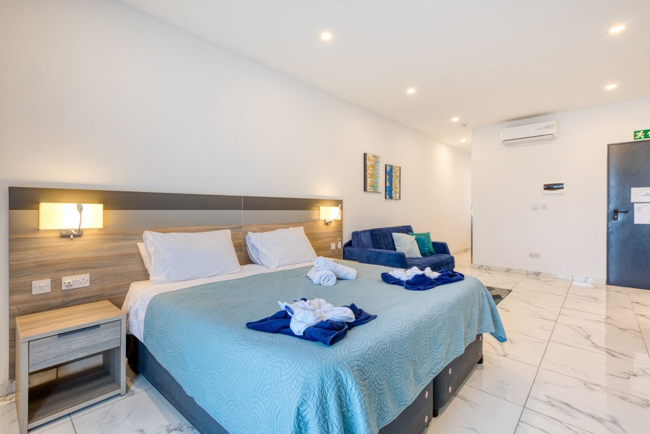 You're just a 1-minute walk to the Bugibba Bus Terminus, making it easy to travel across the island. The scenic seafront promenade and swimming zones are only a 3-minute walk away. Bugibba Water Park is about 5 minutes on foot, and the Malta National Aquarium can be reached in just 10 minutes. For nightlife lovers, Qawra’s bars and beach clubs are only a 12-minute stroll, while Valletta and Mdina can be reached in under an hour by bus or car. Malta International Airport is approximately 35 minutes away by taxi or car.