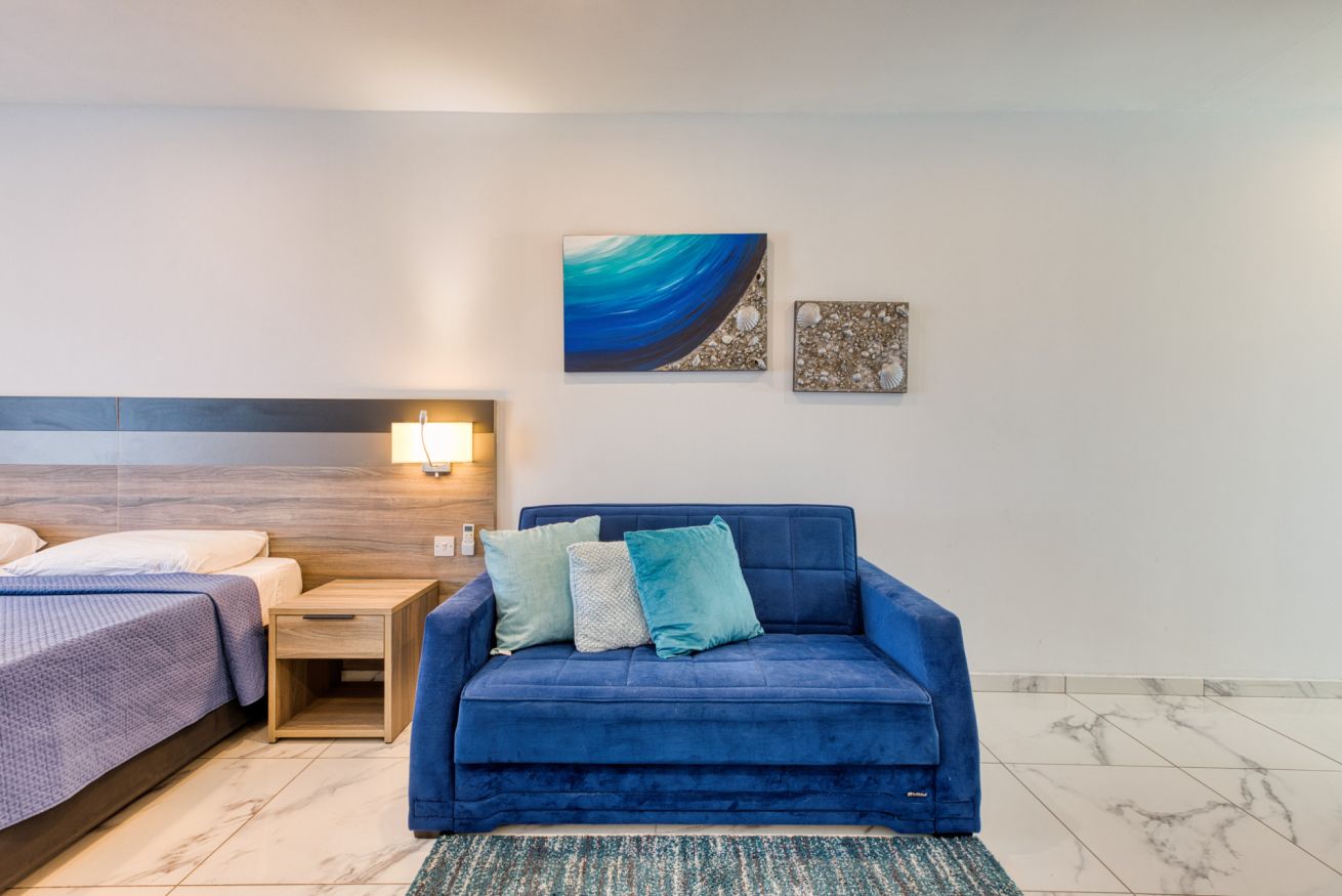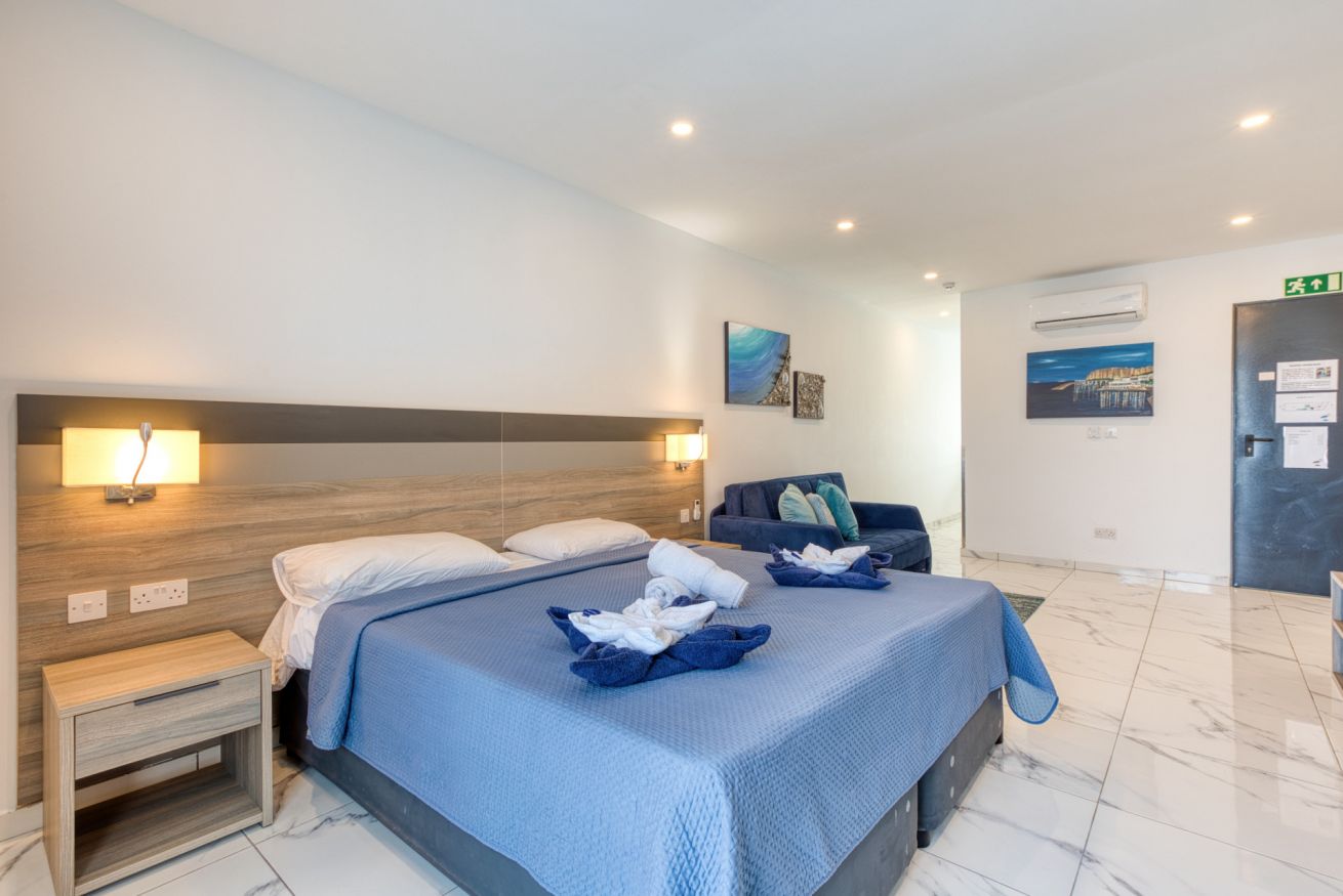 You're just a 1-minute walk to the Bugibba Bus Terminus, making it easy to travel across the island. The scenic seafront promenade and swimming zones are only a 3-minute walk away. Bugibba Water Park is about 5 minutes on foot, and the Malta National Aquarium can be reached in just 10 minutes. For nightlife lovers, Qawra’s bars and beach clubs are only a 12-minute stroll, while Valletta and Mdina can be reached in under an hour by bus or car. Malta International Airport is approximately 35 minutes away by taxi or car.
