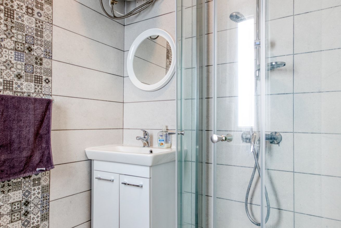 The bedroom features a double bed that can be separated into two single beds upon request, while the living room offers a comfortable sofa bed to accommodate additional guests. Air conditioning and heating ensure a pleasant stay year-round, and you’ll also have access to an iron, ironing board, and hairdryer for your convenience.
